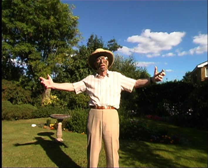 Mr. Thomas is in the back garden, performing his new moves in the glorious sunlight, making things happen. Somewhere between a ritual, a white suburban war-dance and 1970’s ‘keep fit’ exercise to lovely music, Mr. Thomas tries to coordinate with the Black Blob, that persistently undermines the nature of his representational space… And the song goes: