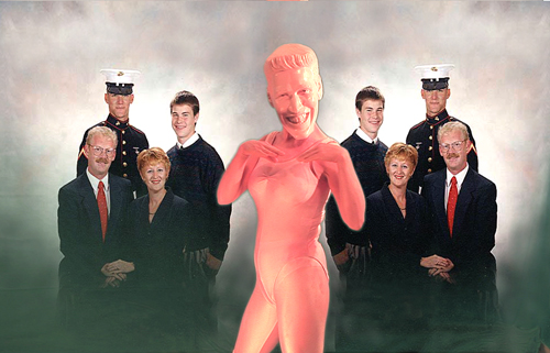 An intensely Pink Lady with a disturbing face performs a lecture, or motivational monologue, accompanied by an emotional slide show of formal family portraits. She is trying to persuade us of something, we don’t know what, as the translation is all wrong… she could be trying to help us to be happy, or it could be that through new techniques, by the end of the video we’ve been brainwashed…