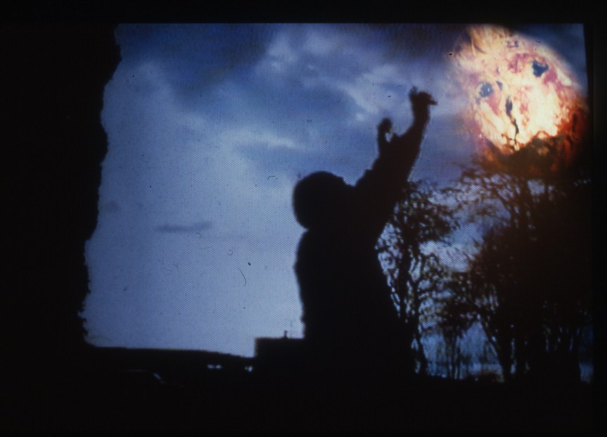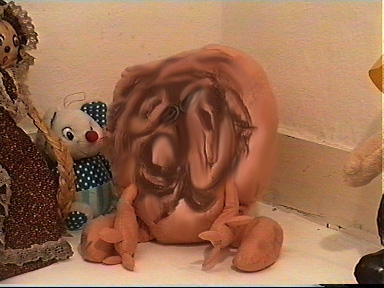 1997, 9 min. Digital video animation \ multi media collage arising from the Whitechapel Art Gallery Video Artist’s Residency at Tower Hamlets Summer University. Using the nightmares and dreams narrated to me by participating adolescents, animations of their plasticene “demons/bogeymen” were collaged together with their own physical mime acts into a bizarre fantasy.